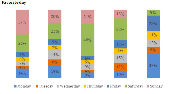 Target research also reveals both convergence and divergence points between men and women. Preferences between age brackets are not always the same. Following media also depends on the fact that someone is active or none – active. Respondents expressed on preferred moments of media audience. Except for print media that is mostly read at the beginning of the week, other media are mostly followed on the weekend. It is very often in the evening, that the majority of people watch television or are connected to internet. However, some like listening to the radio and reading newspapers in the morning.
