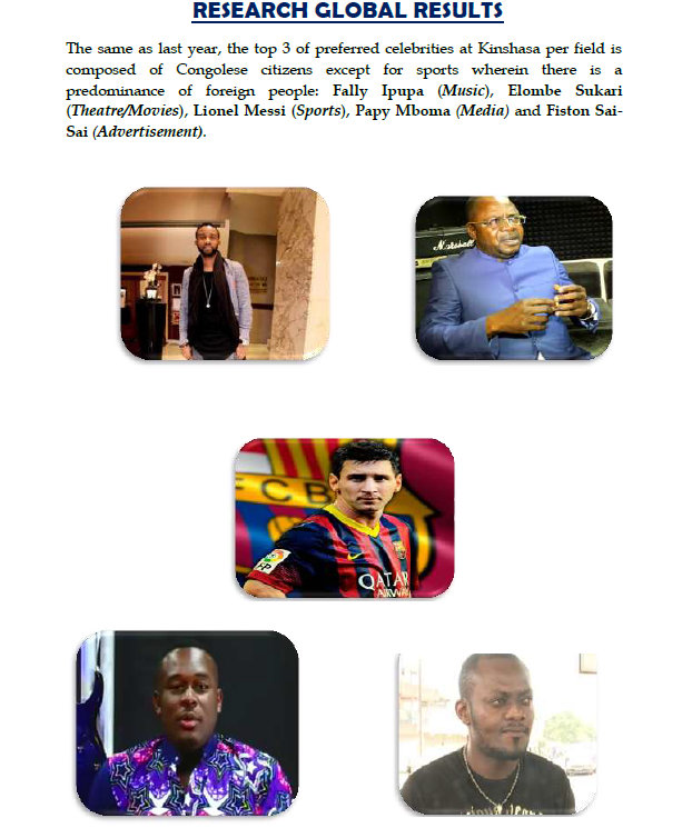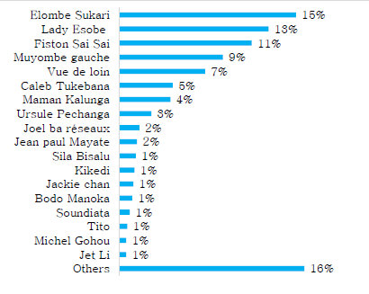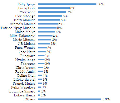 Werrason (7%), Koffi Olomidé (6%) and L’Or Mbongo (6%). Ferré Gola is actually