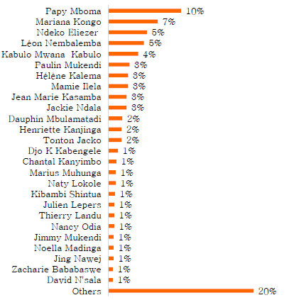 (7%) and Ndeko Eliezer Ntambwe alias Ndeko Eliezer, more captivate the men