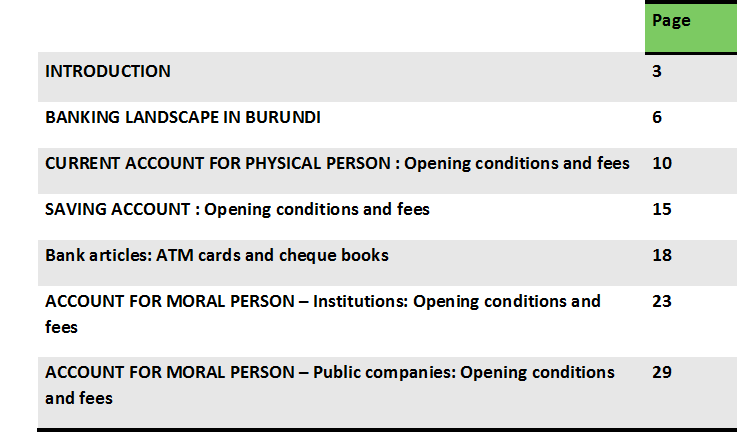 The bank field is facing great challenges related to current political and economic situation. This situation does not encourage financial inclusion. Burundi economy hardy paid from civil war side effects. It is only after Arusha agreement in 2000 that economic growth started. An economy dominated by agriculture, representing 43.5% of GDP and almost 90% of employment in 2008, immediate side effects on the financial crisis within financial sector had limited impacts.