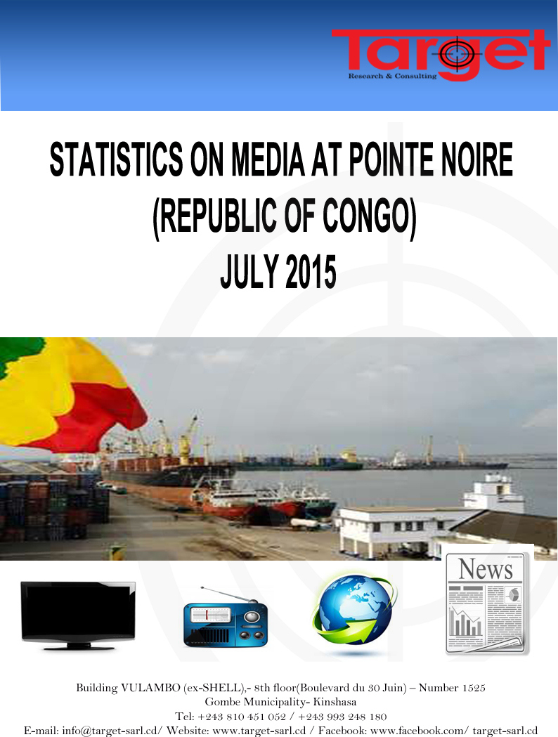 After Kinshasa and Lubumbashi in DR Congo, Target SARL conducted a research on audience of media at Pointe-Noire, economical capital of Republic of Congo. Television is far above the most consumed media thus standing ahead, by order, satellite channels, radio, internet and print media. Summary of main results.