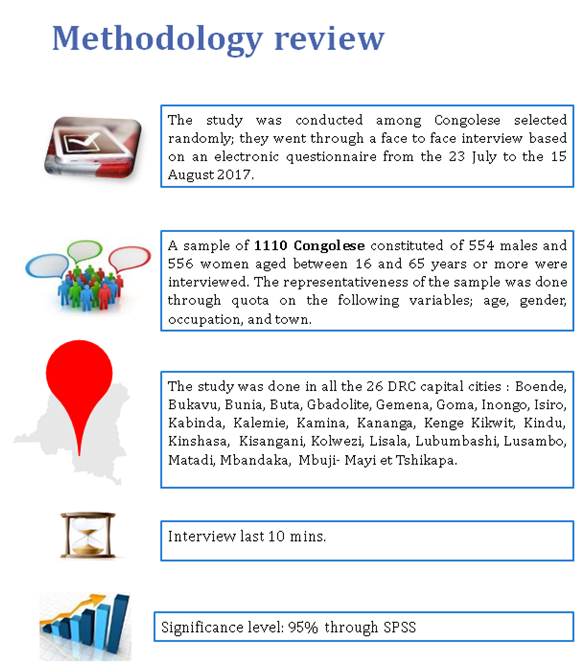 For the year 2017, the study was nationwide because realities among Kinois cannot be necessarily transposed to the overall country in one part, on the other part, advertisers and communication agencies aimed at doing nationwide communications. Regarding the various fields, it has been added politics, religion, businesses in other to increase as much as possible the background of personalities involved with this publication.