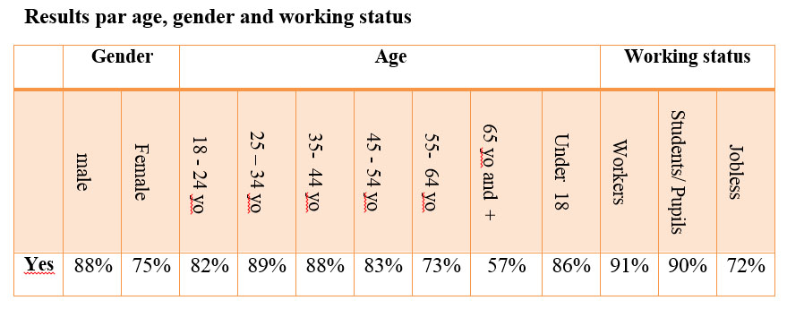 Smartphones are allowing the use of several applications and internet connecting. The majority of respondents (68%) are not using them. Seniors and people of above 65 years old are those who are mostly using smartphones (85%).