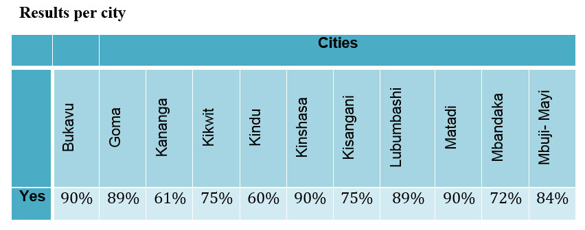 Let’s underline that the said research has been first of all conducted at Kinshasa and Lubumbashi in 2014. Thereafter Target decided to broaden this latter throughout main cities in 2015.
