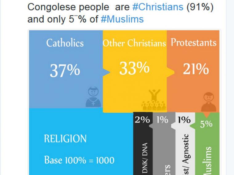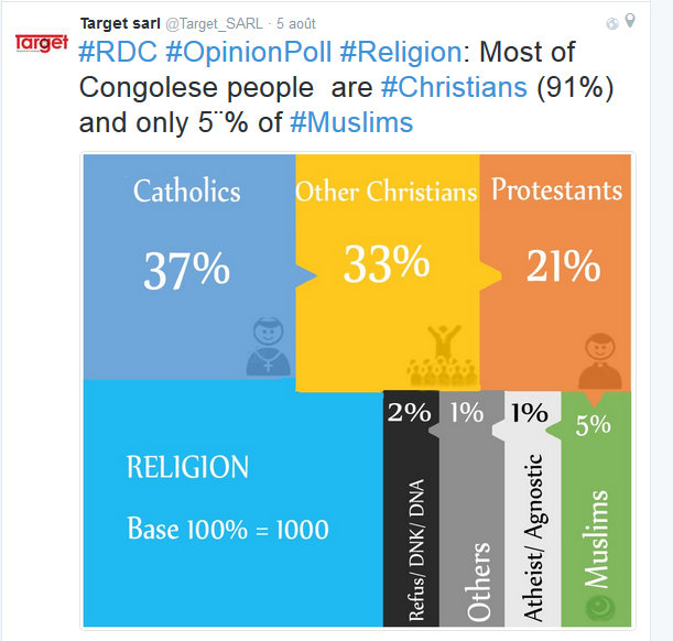 #RDC #OpinionPoll #Religion: Most of Congolese people are #Christians (91%) and only 5¨% of #Muslims pic.twitter.com/3lHVMYveDM
