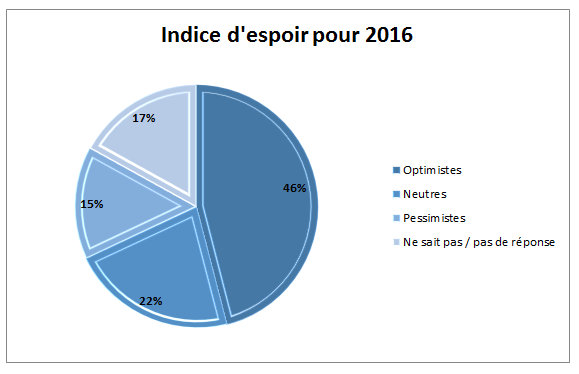 «2015 a été une année tumultueuse pour beaucoup à travers le monde, malgré que le monde reste en grande partie un endroit heureux. 45% du monde est optimiste quant aux perspectives économiques pour 2016, en hausse de 3% par rapport à l'année dernière», a déclaré Jean-Marc Léger, président de WIN/Gallup International Association.