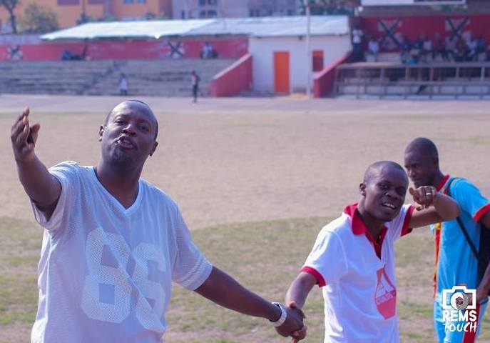 Serge Mumbu, General Manager de Target, et Patient Ligodi, Directeur d’Actualite.cd, étaient tous les deux présents sur le terrain au coup d’envoi du match.