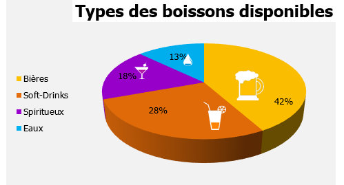 Dans les bars et terrasses par exemple, les spiritueux ne représentent que 2% des boissons qui y sont vendus. A côté des spiritueux, l’eau est aussi la boisson la moins présente dans les bars et terrasses (6%). Elle atteint néanmoins 19% dans les supermarchés et 20% dans les boutiques.
