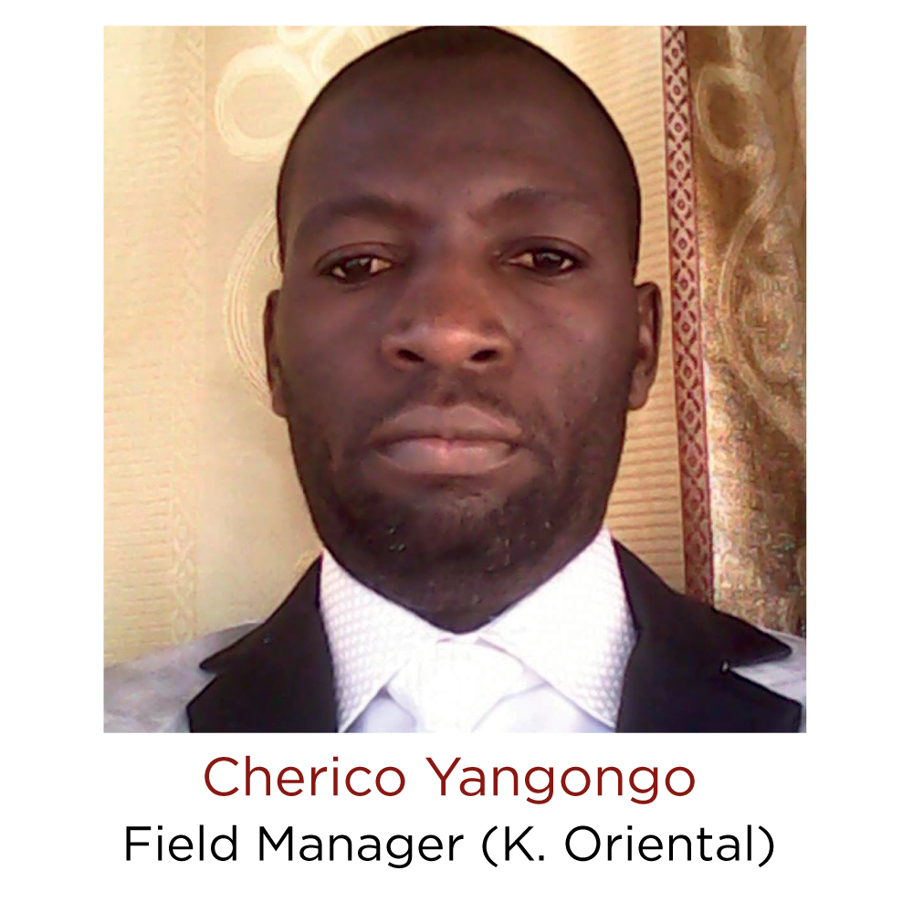 Le meilleur Field manager de Target en 2018 est Cherico Yangongo. Evoluant à Mbuji-Mayi, Cherico est expérimenté et a su démontrer son professionnalisme dans les études quantitatives et qualitatives, particulièrement dans le cas d’une étude à Kananga où il a fait la modération des groupes et les entretiens y compris en anglais. Cherico a toujours le désir de bien faire. Motivateur de son équipe, il parvient à la porter jusqu'à la réalisation d'un travail de qualité. Très dynamique et proactif, il suit le travail de ses équipes. Il a le souci de l’excellence dans le travail et a pu travailler facilement dans des autres que celle de sa résidence.